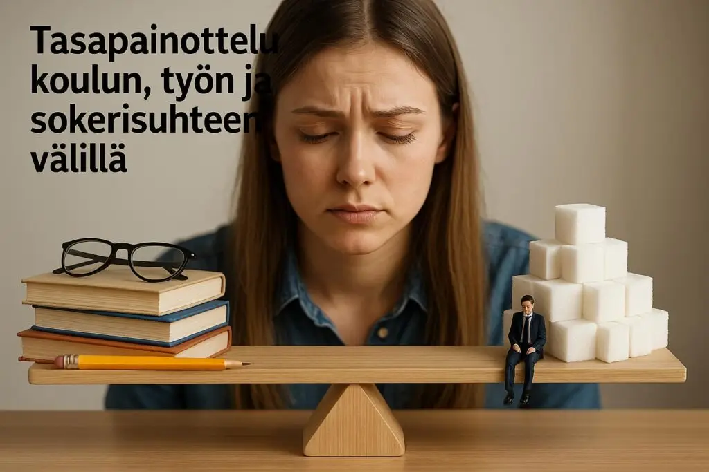 Tasapainottelu koulun, työn ja sokerisuhteen välillä